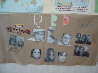 En el primer mural aparecen los personajes de RBD, que es una serie de la televisión que a uno de nosotros le gusta mucho.
